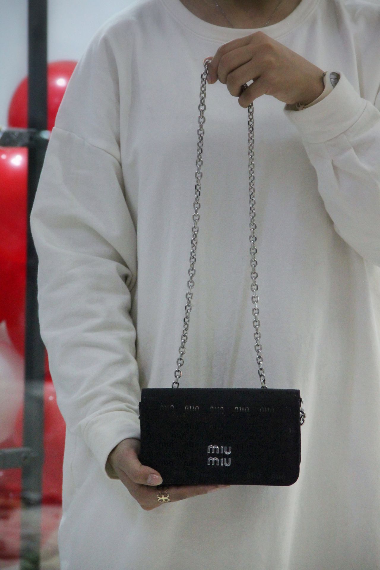 کیف مینیمال وارداتی میو میو بسیار باکیفیت ضمانتی بند این کار دلبر زنجیره هست رنگ ثابت و بدون هیچ تغییر رنگی داخلش گوشی و کلید و سوییچ و ... جامیشه رنگ مشکی پرفروش باهمه لباس ها استایل میشه و محشرو فوق العادست
